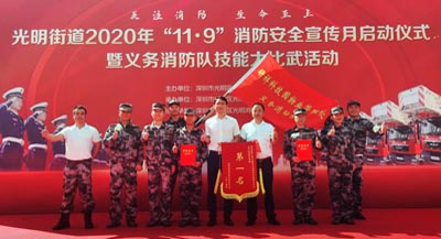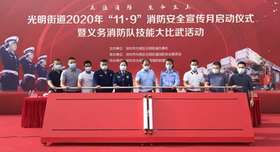 深圳市光明區光明街道辦事處開展以“關注消防,生命至上”為主題的光明街道2020年“119”消防安全宣傳月啟動儀式暨義務消防隊技能大比武活動。光明街道辦、消防隊委員會、消防救援站等部門及鐵保宏泰深圳保安公司員工過百人參與本次活動。