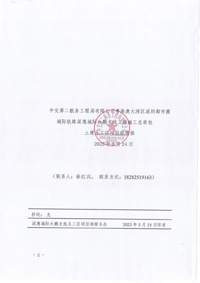 中交第二航務工程局深惠城際工程項目部致信表揚鐵保宏泰保安