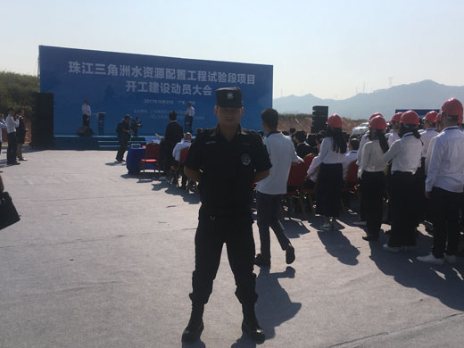 2017年10月31日上午7:30時我司派駐特保人員參加了在深圳市光明水庫舉辦的珠江三角洲水資源配置工程試驗段項目開工建設動員大會安保活動。