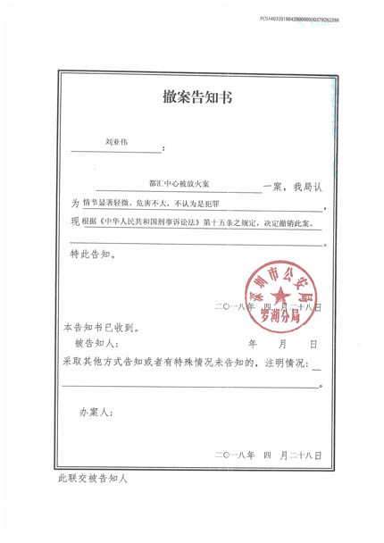 2018年4月28日,保安隊長劉亞偉發現有人在小區樓道放火,迅速組織隊員火火并報警抓捕放火人員。由于隊長處理迅速,未造成人及財產損失。