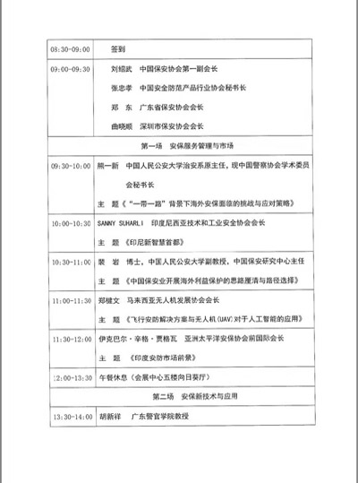 劉紹武中國保安協(xié)會(huì)第一副會(huì)長 張忠孝中國安全防范產(chǎn)品行業(yè)協(xié)會(huì)秘書長 鄭東廣東省保安協(xié)會(huì)會(huì)長 曲曉順深圳市保安協(xié)會(huì)會(huì)長 |