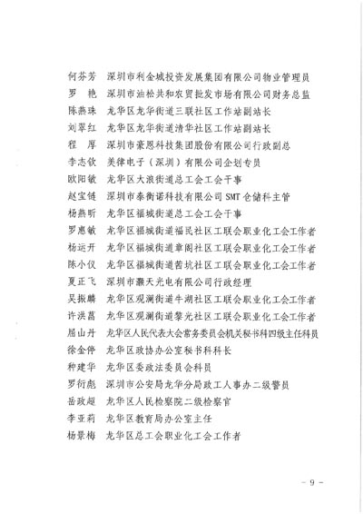 深圳市龍華區發布表彰2020年五一先進個人和先進集體通報